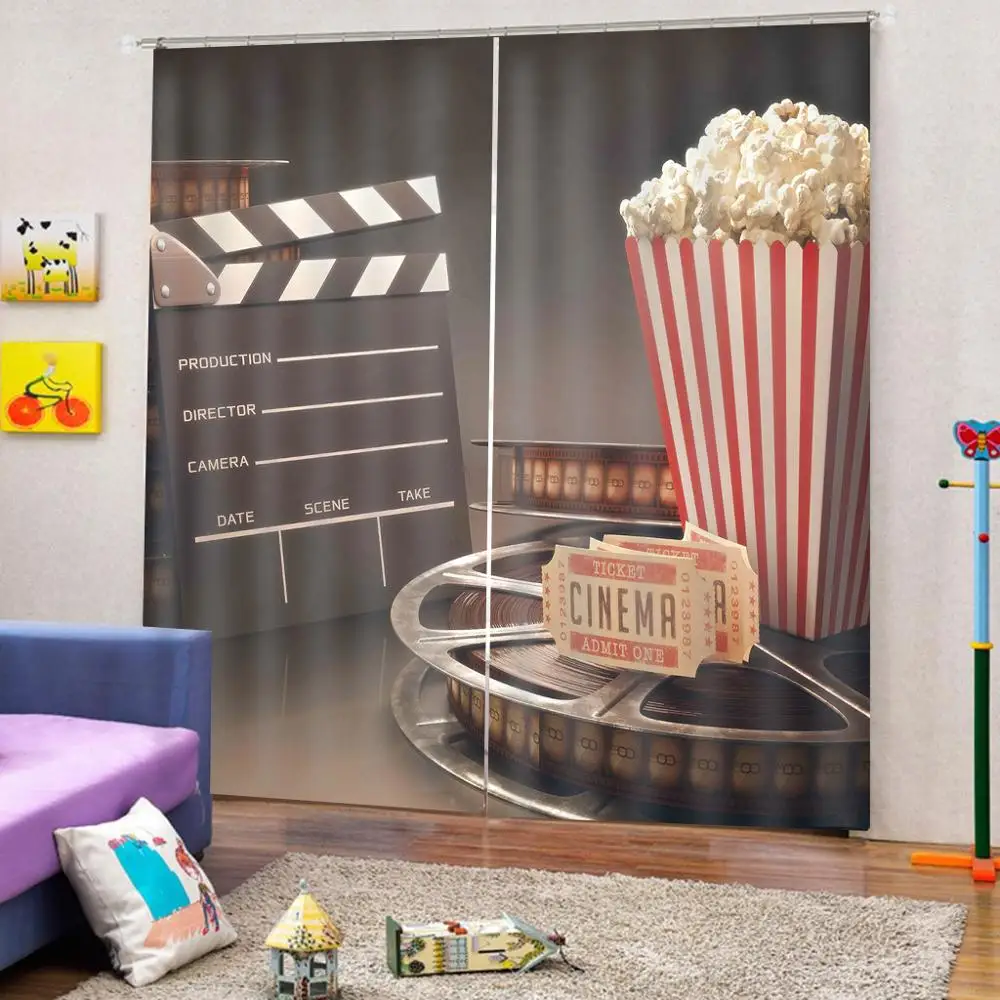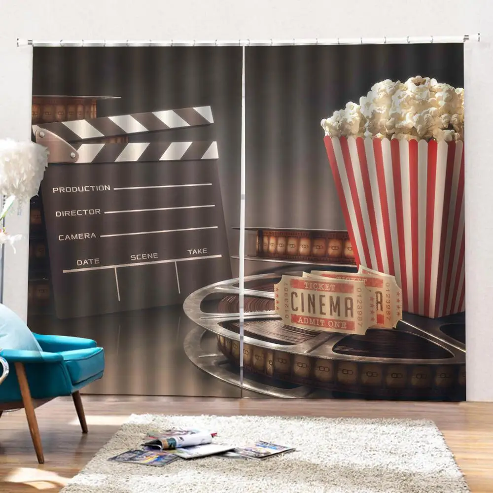 0 Response to "Best Offer for Movie Theater Shower Curtain Production 3D Film Reels Clapperboard Tickets Popcorn and Megaphone Fa"